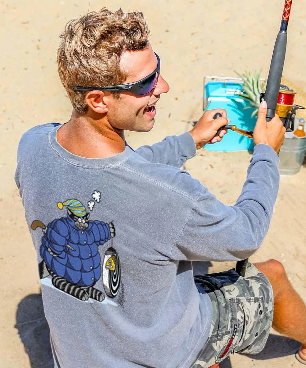 B. Kliban Ice Fishing Cat – Crater Dyed® Long Sleeve Crewneck T-Shirt