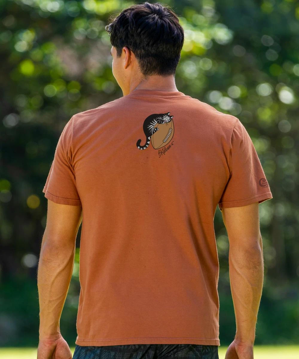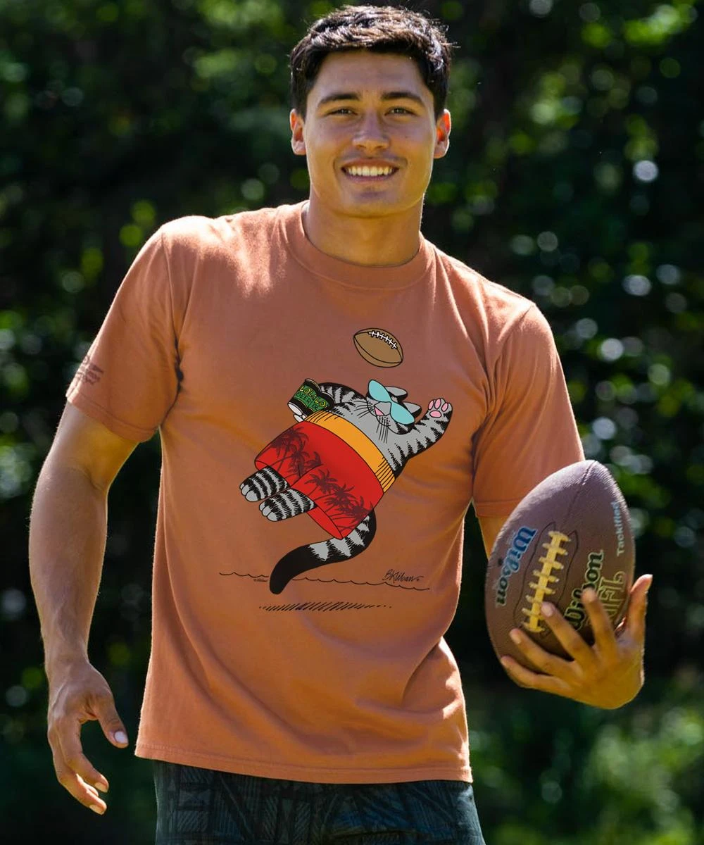 What a grab!!! Perfect for a gameday party or tailgate fiesta, you better snag one of these football-themed tees before they’re gone. Made using our exclusive specialty cinnamon dyeing process and featuring 100% combed ring-spun cotton, this t-shirt has 50+ SPF protection to keep you feeling cool, calm, and protected all year long. We only use environmentally friendly water-based inks that penetrate the material’s fiber resulting in more vibrant colors, a softer feel, and artwork that doesn’t crack or peel. Plus, it is proudly printed in the United States for quality you can see and designs-just like Kliban’s cats-that stand the test of time as well as the bond between Crazy Shirts and The Cat has endured for all these years.