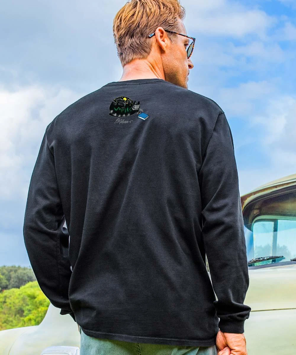 B. Kliban Tail Light Reading Cat – Black Long Sleeve Crewneck T-Shirt