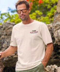 Pearl Harbor Aviation Museum Pearl Harbor Birdseye View – Coconut Dyed Short Sleeve Crewneck T-Shirt