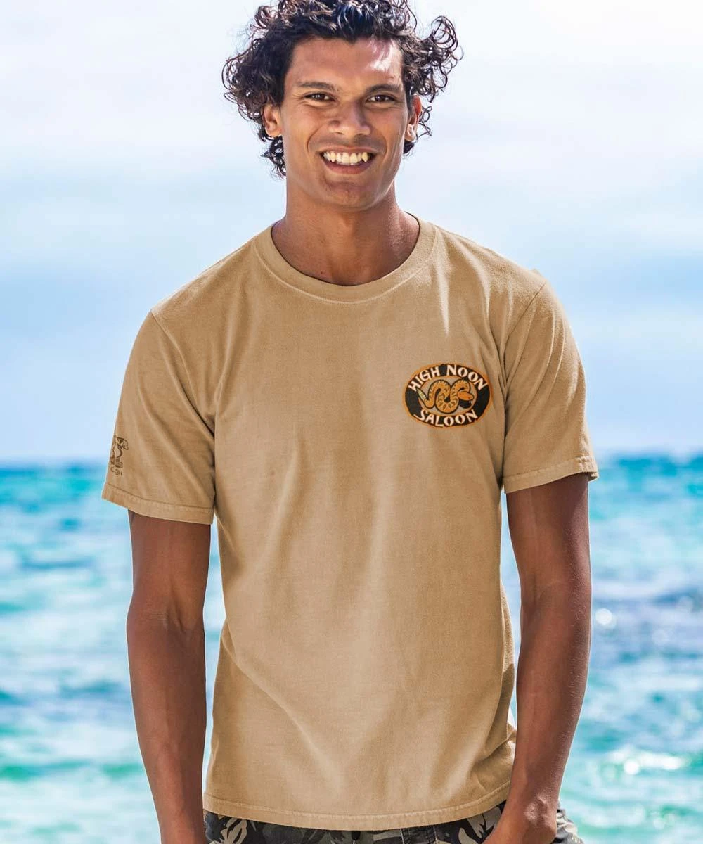 Nothing’s better than a cold beer on a hot desert day. Just make sure to skedaddle when you hear the rattle or you’ll be dead drunk before you know it. Made using our exclusive Kona coffee specialty dyeing process and featuring 100% combed ring-spun cotton, this t-shirt has 50+ SPF protection to keep you feeling cool, calm and protected all year long. We only use environmentally friendly water-based inks that penetrate the material’s fiber resulting in more vibrant colors, softer feel and artwork that doesn’t crack or peel. Plus, it is proudly printed in the United States for quality you can see and designs that stand the test of time.