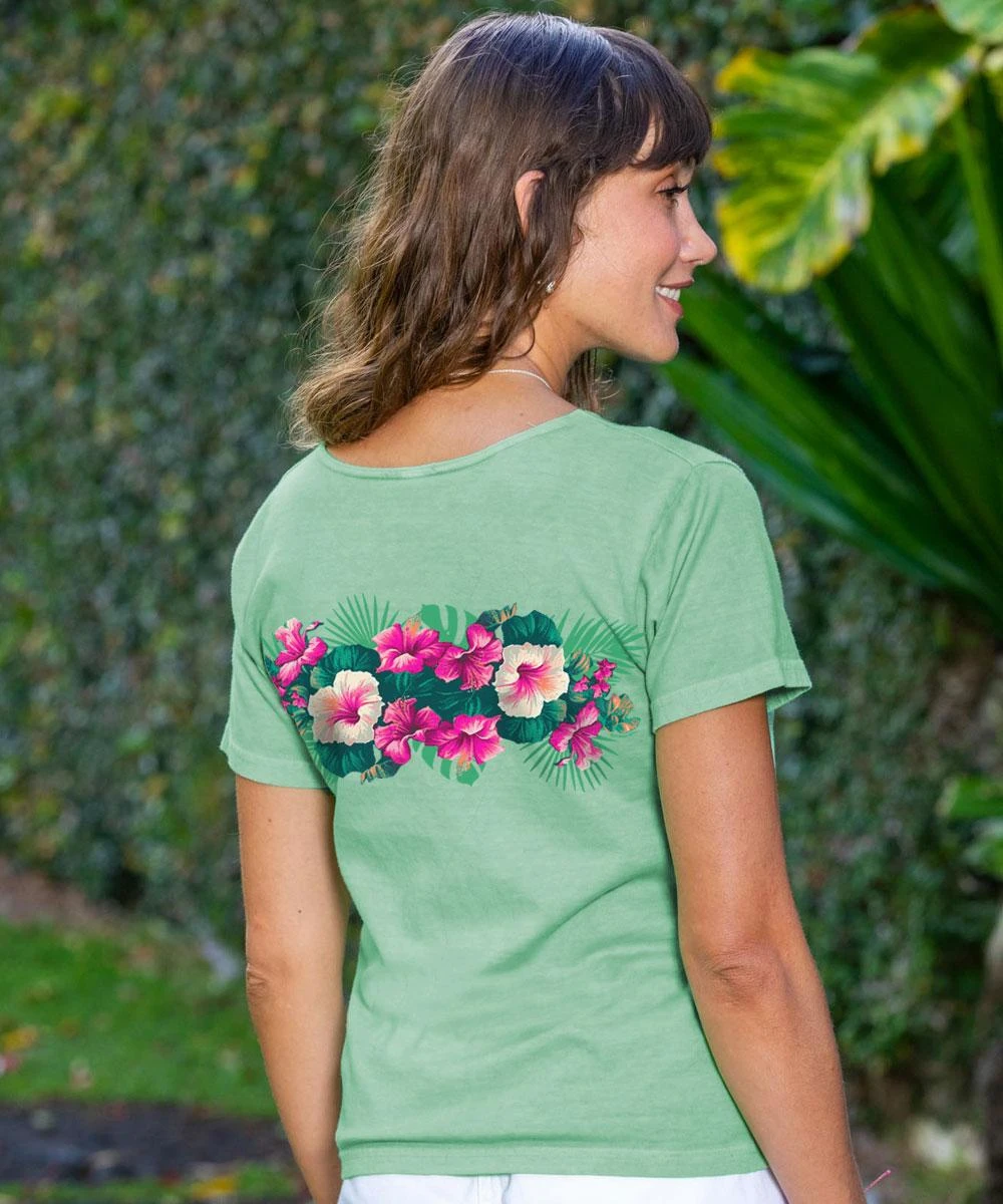 Pacific In Bloom – Key Lime Dyed Short Sleeve Scoop Neck T-Shirt