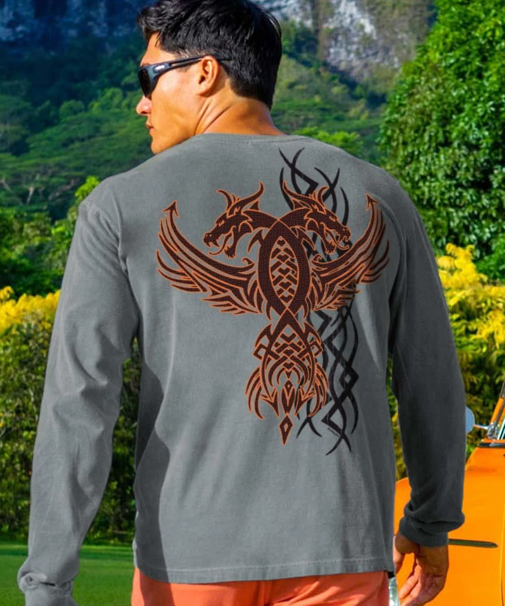 Take some regal, add some power, sprinkle in some mystery and magic. Ta-da! You’ve got a dragon design that will make you feel like a king. Made using our exclusive specialty dyeing process that uses real volcanic ash and featuring 100% combed ring-spun cotton, this t-shirt has 50+ SPF protection to keep you feeling cool, calm and protected all year long. We only use environmentally friendly water-based inks that penetrate the material’s fiber resulting in more vibrant colors, softer feel and artwork that doesn’t crack or peel. Plus, it is proudly printed in the United States for quality you can see and designs that stand the test of time.