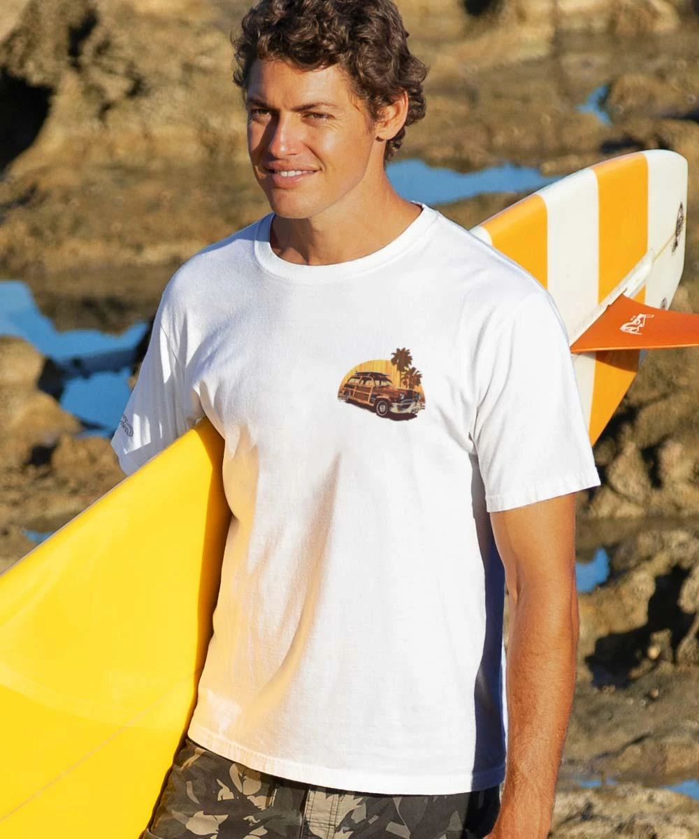 Though the sun has probably set on the days of the woody being everyone’s go-to surf mobile, it is important to remember the good ol’ days. This shirt reminds everyone of the birth of surf culture and shows us that the past should always be present in our minds. Made from 100% cotton that is ring-spun, then combed to remove impurities, this fabric is luxuriously soft and lightweight yet incredibly strong. We only use environmentally friendly water-based inks that penetrate the material’s fiber resulting in more vibrant colors, softer feel and artwork that doesn’t crack or peel. Plus, it is proudly printed in the United States for quality you can see and designs that stand the test of time.