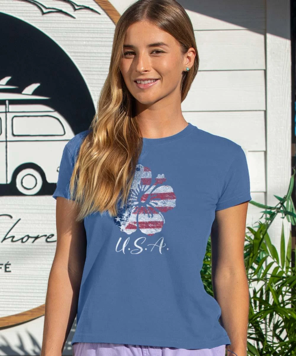 USA Hibiscus – Sapphire Short Sleeve Crewneck T-Shirt