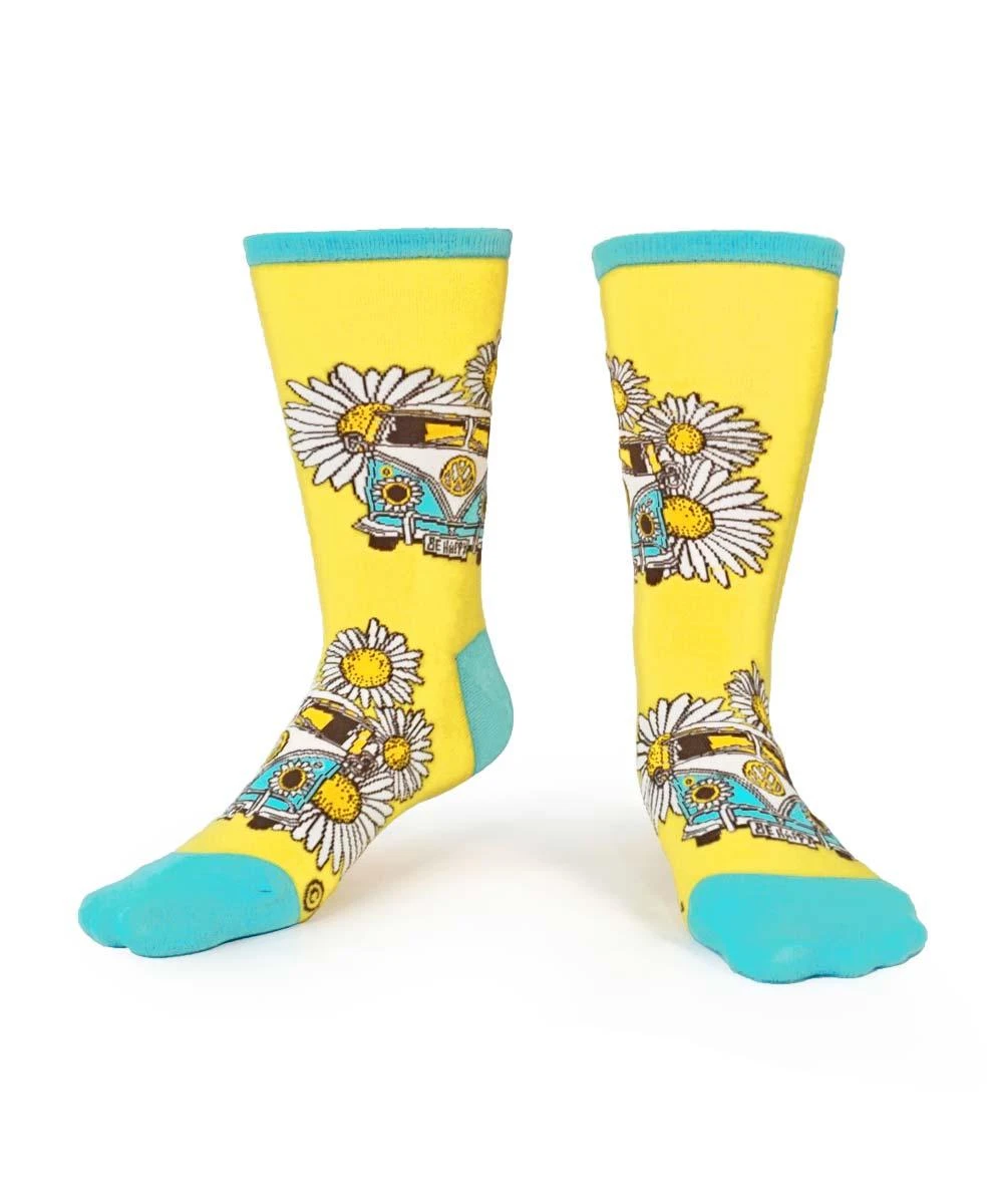 Embrace your inner flower child with this outwardly floral design complete with a hippie mobile-the VW bus. These socks are designed to create an effortlessly elegant style that you can wear with anything. Whether you’re running, hiking or perfecting your golf swing, the self-adjusting welt cuff will keep these socks in place as the day goes on. Treat your feet to the seamless toe closure construction that helps to reduces chafing, keeping you comfortable from Monday to Sunday! We’ve now got you covered from head to toe. Literally!