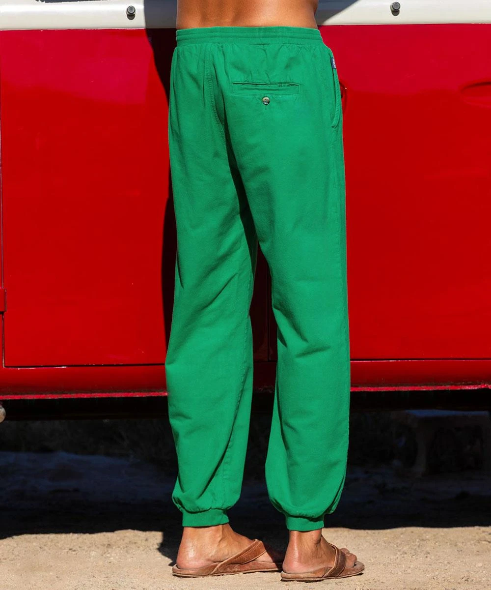 Given a cool green hue thanks to our wintergreen specialty dye, there’s no doubt these pants will always be in “mint” condition. It helps that they’re made from heavyweight twill cotton that can stand up to everyday wear. And you’ll want to pull them on daily because of the relaxed fit and comfortable brushed backing on the inside. Great for lounging around, this style is also constructed with a banded rib-knit elastic waistband and cuffs that make them a more handsome and durable alternative to sweat pants. Their versatility is enhanced by the three-pocket design, further proving that these are the pants of choice for those living a true islander lifestyle. Get yours and make everyone else green with envy.